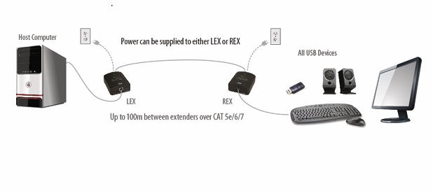 The USB 2.0 Ranger® 2311 Transmitter and Receiver set extends high-speed USB 2.0 connections up to 100m using CAT 5e/6/7 with the option to power either the LEX (Local Extender) or REX (Remote Extender).