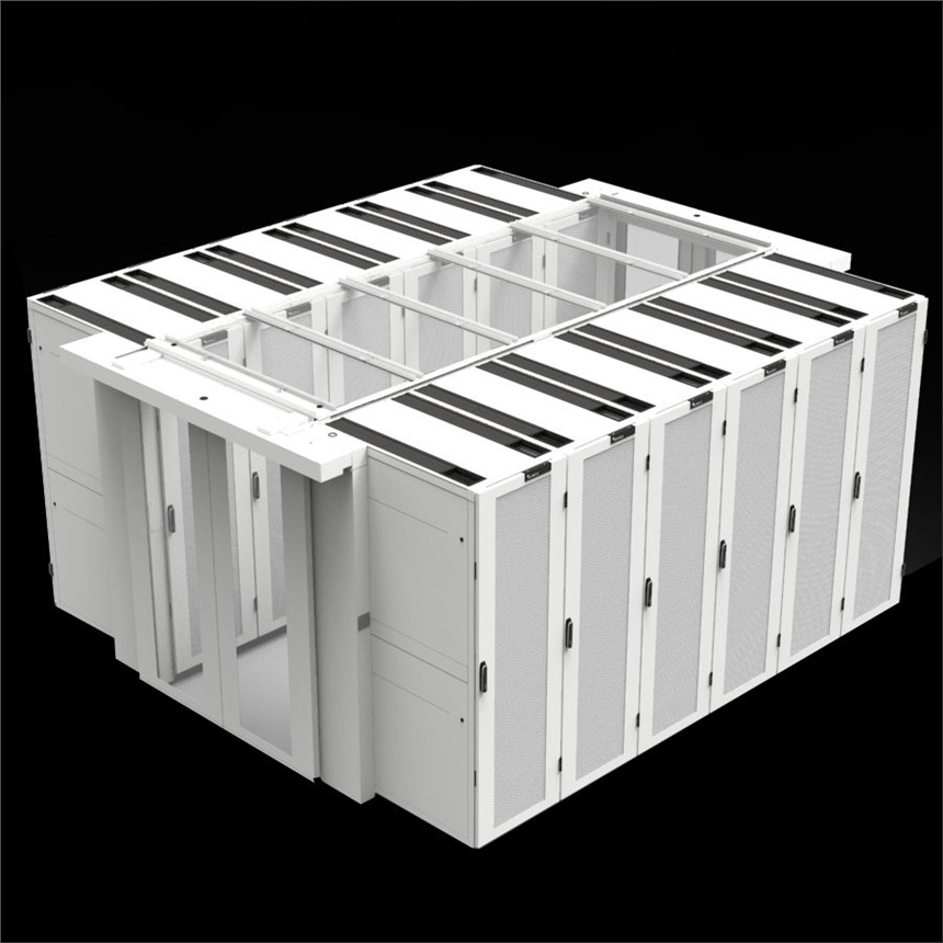 Top panels: top panels are fitted to rails, independently of the server racks. The top is fitted with highly illuminating top panels, enabling light ingress of up to 83%.