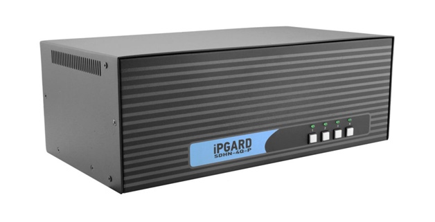 The SDHN-4Q-P is a 4-port, Quad-head DisplayPort to HDMI KVM switch with a dedicated CAC port and support for 4K (3840×2160 @ 30Hz) resolution video.Traditional non-secure KVM switches offer centralized control of multiple computers, but offer no absolute isolation between them. This exposes systems to the possibility of malicious damage and disruption, and acquisition of sensitive data from one computer to another. IPGard’s Secure KVM Switch is designed for use in secure defense and intelligence applications where sensitive data must be protected. The Switch is NIAP PP 3.0 certified and equipped with the highest security features that meet today’s Information Assurance safe control standards. The switch prevents data leakage between computers that can run at different security levels, and eliminate any potential cyber threat. The SDHN-4Q-P allows users to control KVM (Keyboard, Video and Mouse) operation on up to four computers with HDMI monitors. It features mechanical, electrical and optical signal isolation to prevent hacking and data leakage in environments where security is paramount. With the SDHN-4Q-P, all data relays are controlled by inverted signals, shielding connections from outside intrusion by forcing them each to work one at a time. Each port uses its own isolated data channel and each unit features non-reprogrammable ROM to better protect the switch’s functions. Better yet, the SDHN-4Q-P offers the highest security when accessing classified and public networks over the internet through these isolated connections. By isolating connections between networks, the SDHN-4Q-P ensures no data is leaked between secure ports and the outside world. The SDHN-4Q-P has clearly marked front-panel buttons for controlling the device, so securely switching between sources is always simple. For high-grade secure switching made easy, look no further than the SDHN-4Q-P. Many secure KVM switches support CAC devices, such as smart-card and biometric readers, bolstering security when using the device. However, IPGard takes CAC security even further, allowing users to assign specific peripheral devices to the SDHN-4Q-P’s CAC port. Once a peripheral device has been registered by an authenticated admin, users can then switch the connection between that device and the PC’s along with KVM switching. The Secure KVM emulates (simulates) the presence of a keyboard and mouse for every attached computer through a USB cable. Both selected and non-selected computers maintain a constant connection with the unit’s keyboard-mouse emulation controllers, allowing for ultra-fast switching and restricting discovery of newly connected peripherals during switching operations. Emulation of keyboard and mouse also prevents direct connection between the peripherals and the connected computers, shielding systems from potential vulnerabilities. The SDHN-4Q-P simulates a generic EDID as default, allowing it to operate most of the connected monitors. Both selected and non-selected computers maintain a constant connection with the unit’s video emulation controllers, allowing for ultra-fast switching and restricting discovery of newly connected monitors during switching operations. Upon activating the KVM, the unit will quickly and automatically learn new EDID for specific monitors. The unit then prevents unwanted and unsecure data from getting transmitted through DDC lines by means of secure EDID learning and emulation.