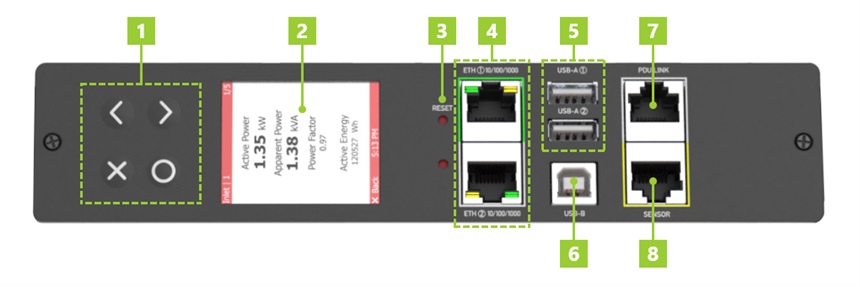 7. PDU Link Port allows the physical linking of 2 PDUs where the Primary unit has the power information from the Link unit. Ensures redundant power for the main Controller for both units, even if the Primary unit loses power.