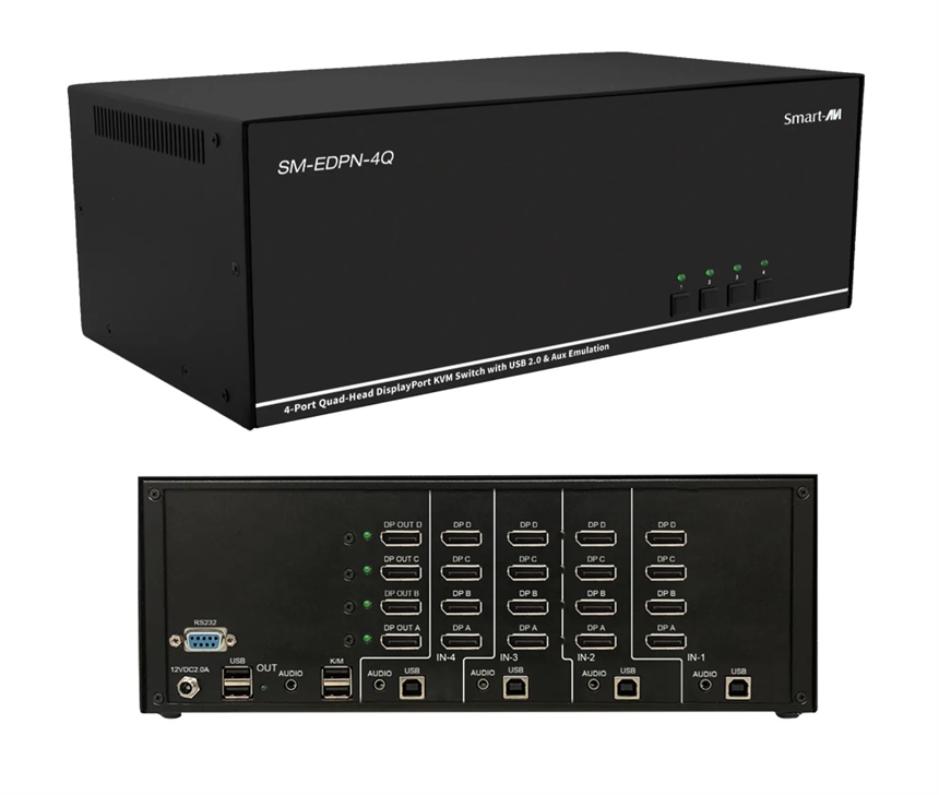 SM-EDPN-4Q - SmartAVI - Quad Head 4-Port UHD 4k@60 DP KVM Switch with Edid Aux Emulation (Quad Head KVM Switch) *NEW*