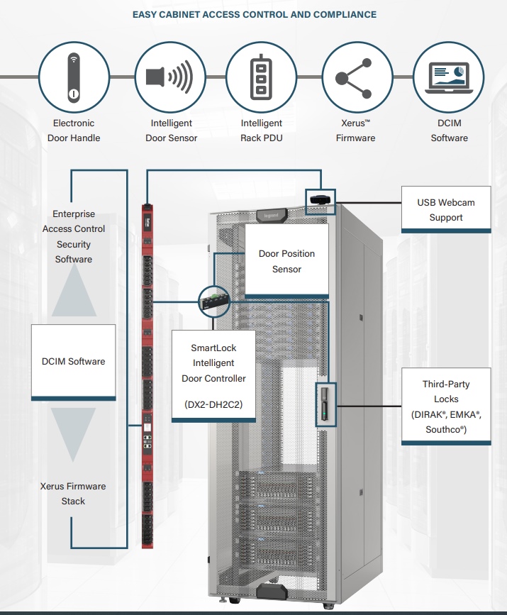 -Secures up to 16 cabinets (32 locks front and rear) under a single IP address and is linkable to Raritan PDUs and Smart Rack Controllers