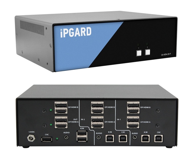 SA-HDN-2D-P - iPGARD - 2-Port, Dual Screen, NIAP PP 4.0, Secure KVM Switch, DisplayPort/HDMI KVM (w/audio) 4K Video SmartAVI (with CAC)