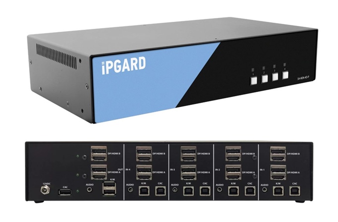 SA-HDN-4D-P - iPGARD - 4-Port, Dual Screen, NIAP PP 4.0, Secure KVM Switch, DisplayPort/HDMI KVM (w/audio) 4K Video SmartAVI (with CAC)