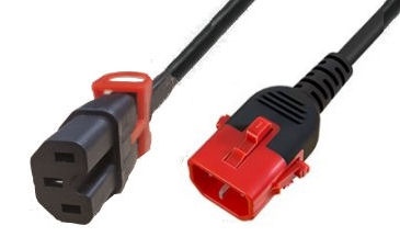 IECLOCK DUAL LOCK C15-C14, Hot Power Extension Black with IEC Locking C15&C14