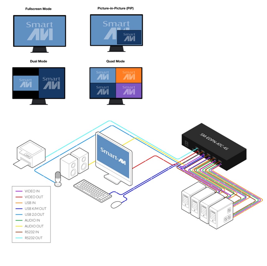SM-EDPN-ATC-4S-S High-performance 4K Single-Head-RS232-ReduntantPS Seamless 4Port DisplayPort KVM switch - purpose-built for mission-critical KVM and AV control ( AIR TRAFFIC CONTROL KVM)
