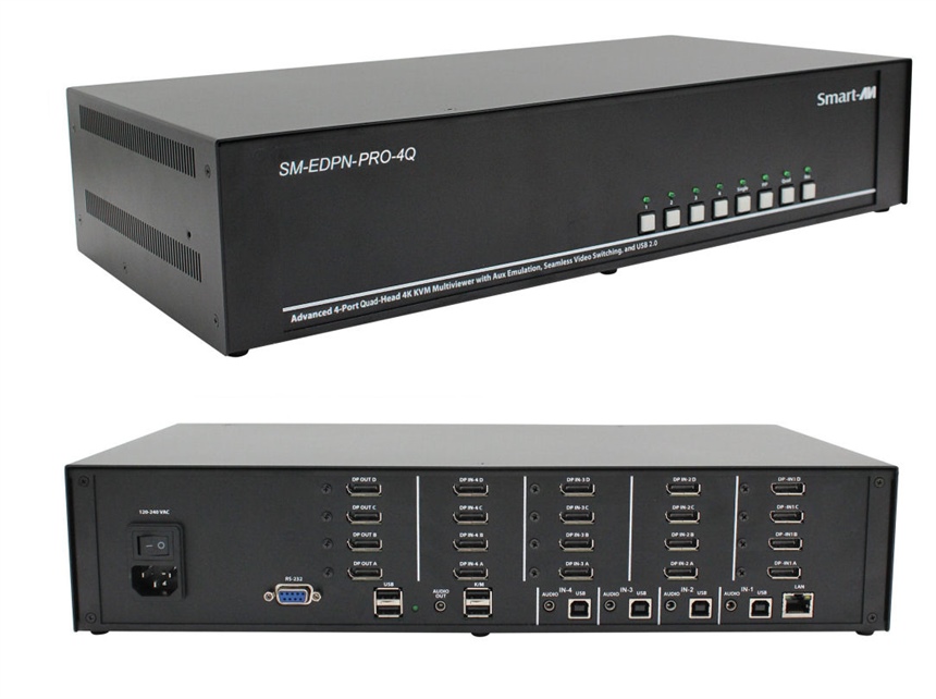 SM-EDPN-PRO-4Q-S High-performance 4K Quad-Head Seamless 4Port DisplayPort KVM switch - purpose-built for mission-critical KVM and AV control