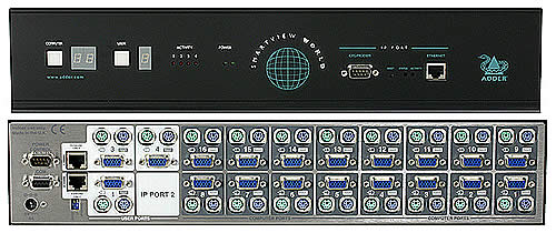 The SmartView World supports four simultaneous users, sixteen computers and is cascadeable to support up to 500 multi-platform computers using Adder's XPro or Matrix switches. Almost all common types of computer may be connected using Adder's PS/2, USB and Sun style KVM cables. One of the user ports is local, one operates via IP and the other two support both local and twisted pair extension connections.