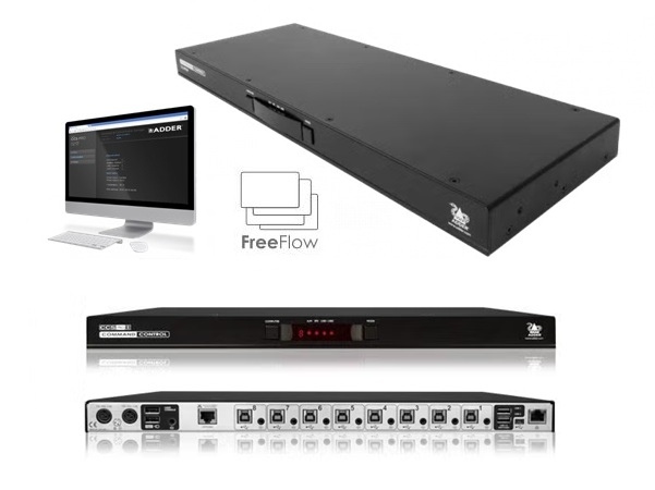 CCS-PRO8-IEC - ADDER - 8 Port KM Switch with Multi Monitor Free Flow Software. Adder Command & Control Room Switch / USB Trader Switch with Sychrony Free Flow Software "Mouse-over screen switching
