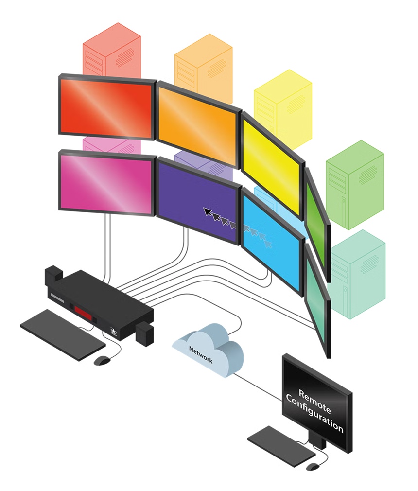 Free-Flow allows users to automatically switch between target computers simply by moving the mouse pointer from screen to screen. Unlike software-only variants, no software or networking is required on your mission critical computers for Free-Flow to work.