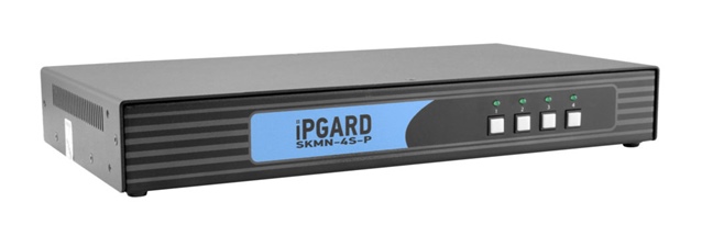The SKMN-4S-P is a 4-port USB KM switch with a dedicated CAC port. It allows users to control keyboard-mouse functions of connected systems using a single USB keyboard-mouse combo.Traditional non-secure KM switches offer centralized control of multiple computers, but offer no absolute isolation between them. This exposes systems to the possibility of malicious damage and disruption, and acquisition of sensitive data from one computer to another. IPGard’s Secure KM Switch is designed for use in secure defense and intelligence applications where sensitive data must be protected. The Switch is NIAP PP 3.0 certified and equipped with the highest security features that meet today’s Information Assurance safe control standards. The switch prevents data leakage between computers that can run at different security levels, and eliminate any potential cyber threat. The SKMN-4S-P allows users to control KM (Keyboard and Mouse) operation on up to four computers. It features mechanical, electrical and optical signal isolation to prevent hacking and data leakage in environments where security is paramount. With the SKMN-4S-P, all data relays are controlled by inverted signals, shielding connections from outside intrusion by forcing them each to work one at a time. Each port uses its own isolated data channel and each unit features non-reprogrammable ROM to better protect the switch’s functions. Better yet, the SKMN-4S-P offers the highest security when accessing classified and public networks over the internet through these isolated connections. By isolating connections between networks, the SKMN-4S-P ensures no data is leaked between secure ports and the outside world. The SKMN-4S-P has clearly marked front-panel buttons for controlling the device, so securely switching between sources is always simple. For high-grade secure switching made easy, look no further than the SKMN-4S-P. Many secure KM switches support CAC devices, such as smart-card and biometric readers, bolstering security when using the device. However, IPGard takes CAC security even further, allowing users to assign specific peripheral devices to the SKMN-4S-P’s CAC port. Once a peripheral device has been registered by an authenticated admin, users can then switch the connection between that device and the PC’s along with KM switching. The Secure KM emulates (simulates) the presence of a keyboard and mouse for every attached computer through a USB cable. Both selected and non-selected computers maintain a constant connection with the unit’s keyboard-mouse emulation controllers, allowing for ultra-fast switching and restricting discovery of newly connected peripherals during switching operations. Emulation of keyboard and mouse also prevents direct connection between the peripherals and the connected computers, shielding systems from potential vulnerabilities. IPGard Secure KM Switches offer top-grade data protection when accessing keyboard-mouse functions across multiple connected computer systems. IPGard’s NIAP Protection Profile Ver. 3.0 (PP3.0) standard compliance ensures all IPGard KM switches utilize the newest, most advanced safeguards in relation to keyboard, mouse, and audio security. Each IPGard Secure KM Switch uses Seamless Cursor & Keyboard Switching (SCS), which lets users transition between highly isolated computer systems simply by moving a mouse cursor across individual display borders. Each connected system’s display remains visible during SCS, but the Secure KM Switch keeps each system isolated and protected.Defense, intelligence and finance specialists who regularly work with sensitive data will benefit considerably from IPGard’s Secure KM Switches’ SCS functions, saving them both the time and effort of switching between systems.
