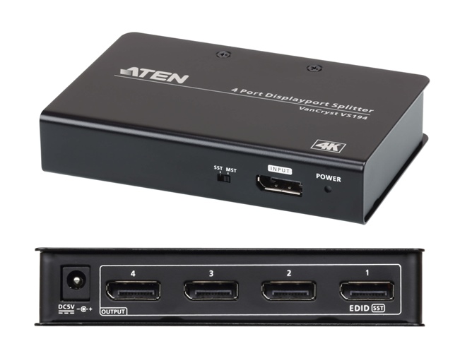 VS194 - Aten - 4 port True 4K DisplayPort Splitter, MST Hub Extend Mode or SST Split Mode video extender (AV / Video Splitter)