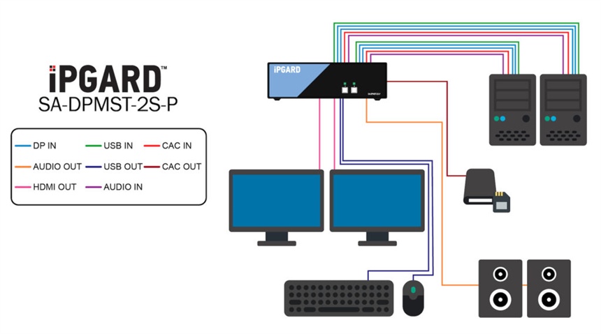 SA-DPMST-2S-P - iPGARD - 2-Port, Single Screen, NIAP PP 4.0, Secure KVM Switch, DisplayPort to Quad-Head HDMI (w/audio) 4K Video SmartAVI, with MST (with CAC) DPMST