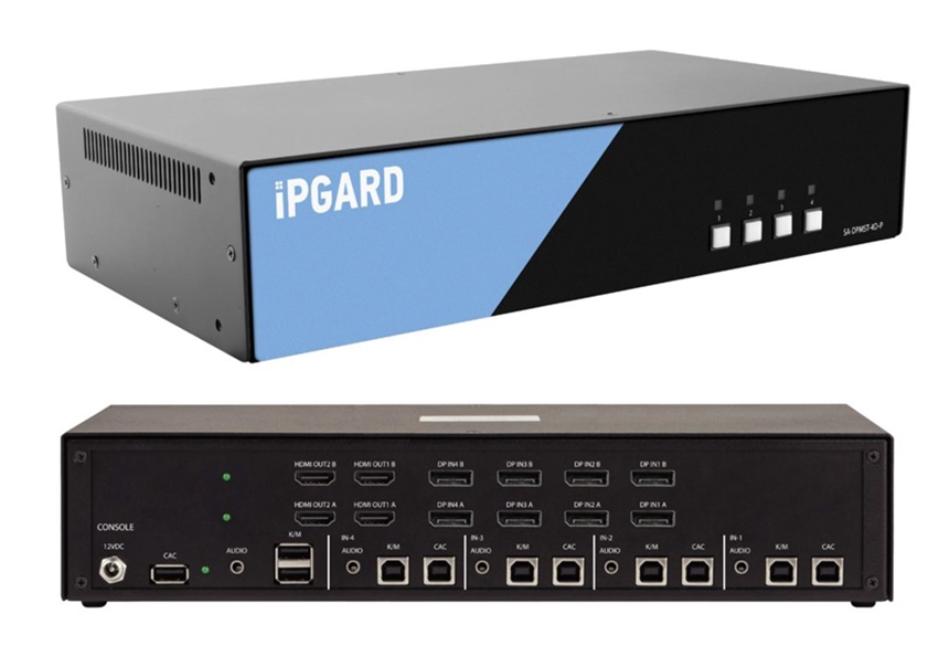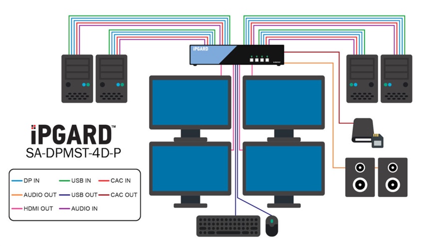SA-DPMST-4D-P - iPGARD - 4-Port, Dual Screen, NIAP PP 4.0, Secure KVM Switch, DisplayPort to Quad-Head HDMI (w/audio) 4K Video SmartAVI, with MST (with CAC) DPMST