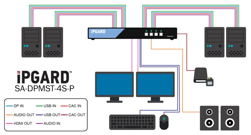 SA-DPMST-4S-P - iPGARD - 4-Port, Single Screen, NIAP PP 4.0, Secure KVM Switch, DisplayPort to Quad-Head HDMI (w/audio) 4K Video SmartAVI, with MST (with CAC) DPMST