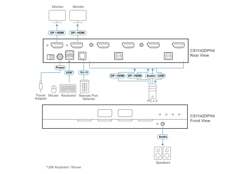 1x CS1142DPH4 2-Port USB 5K DisplayPort/HDMI Dual Display Universal Secure KVM Switch