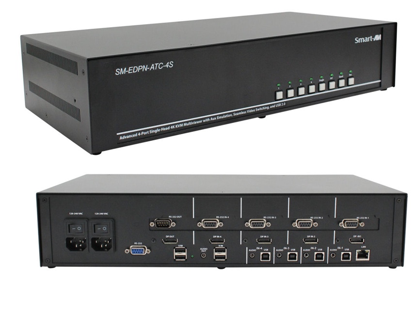 SM-EDPN-ATC-4S-S High-performance 4K Single-Head-RS232-ReduntantPS Seamless 4Port DisplayPort KVM switch - purpose-built for mission-critical KVM and AV control ( AIR TRAFFIC CONTROL KVM)