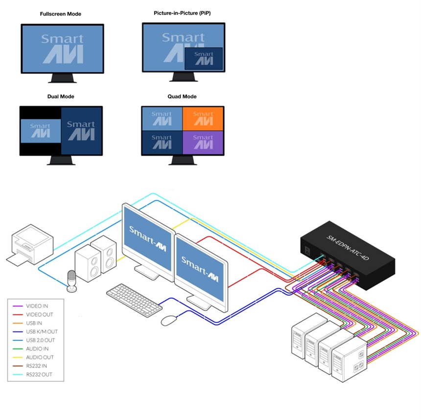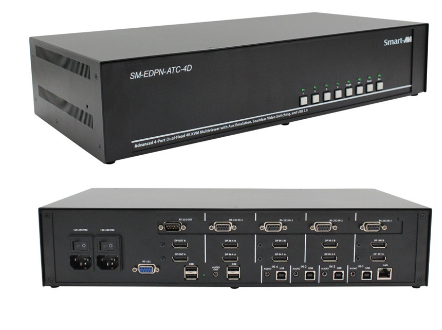 SM-EDPN-ATC-4D-S High-performance 4K Dual-Head-RS232-ReduntantPS Seamless 4Port DisplayPort KVM switch - purpose-built for mission-critical KVM and AV control ( AIR TRAFFIC CONTROL KVM )
