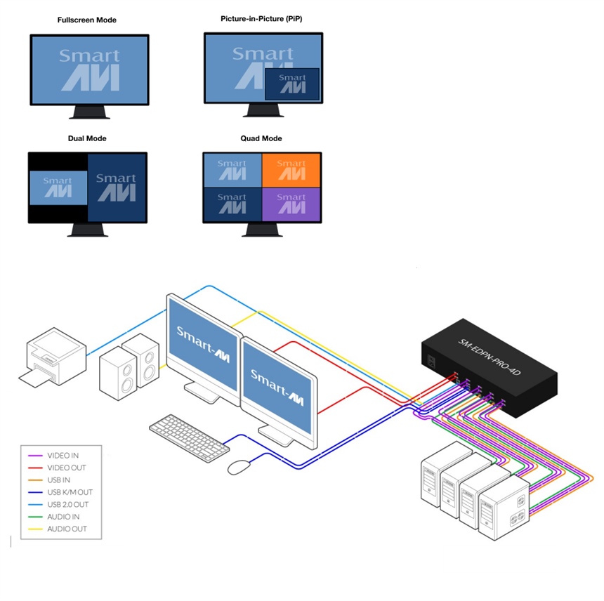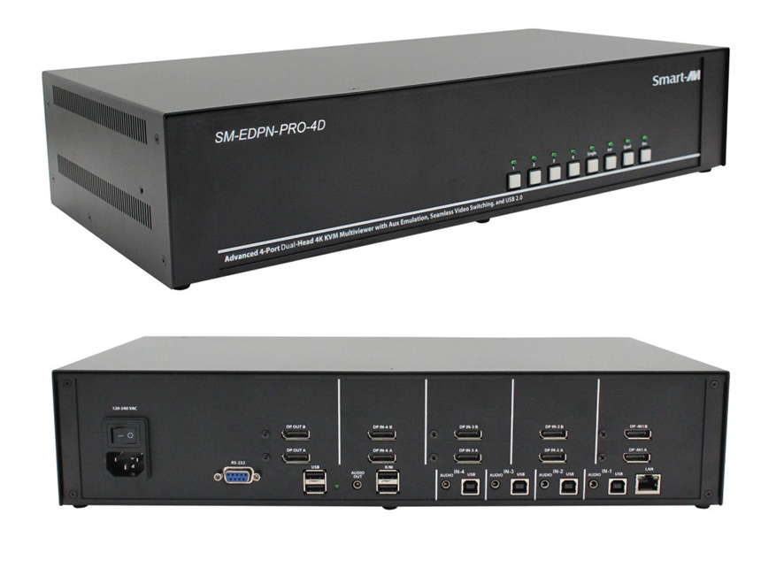 SM-EDPN-PRO-4D-S High-performance 4K Dual-Head Seamless 4Port DisplayPort KVM switch - purpose-built for mission-critical KVM and AV control