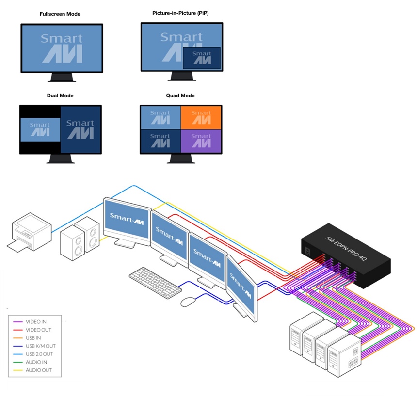 SM-EDPN-PRO-4Q-S High-performance 4K Quad-Head Seamless 4Port DisplayPort KVM switch - purpose-built for mission-critical KVM and AV control